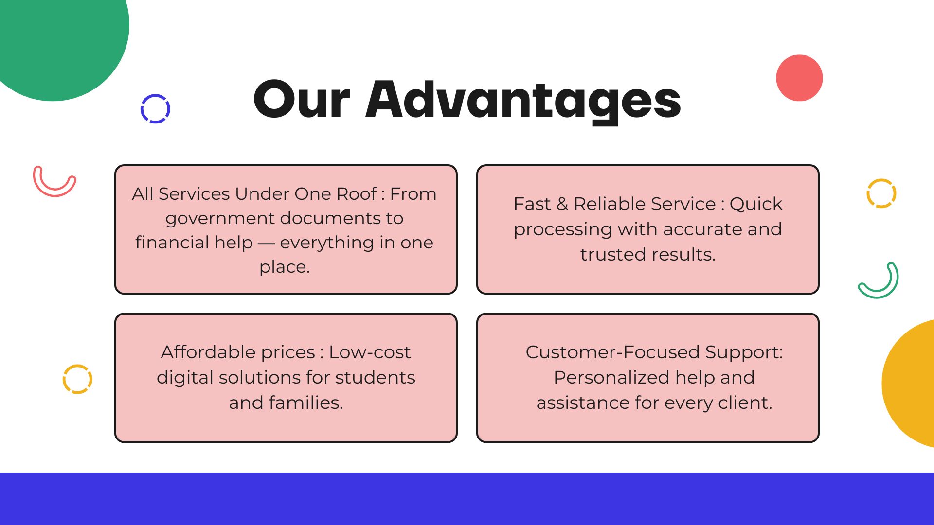 We help people complete important online tasks with ease and speed — from government forms to printing, scanning, job applications, ticket bookings, and more. Our systems are fast, secure, and user-friendly.